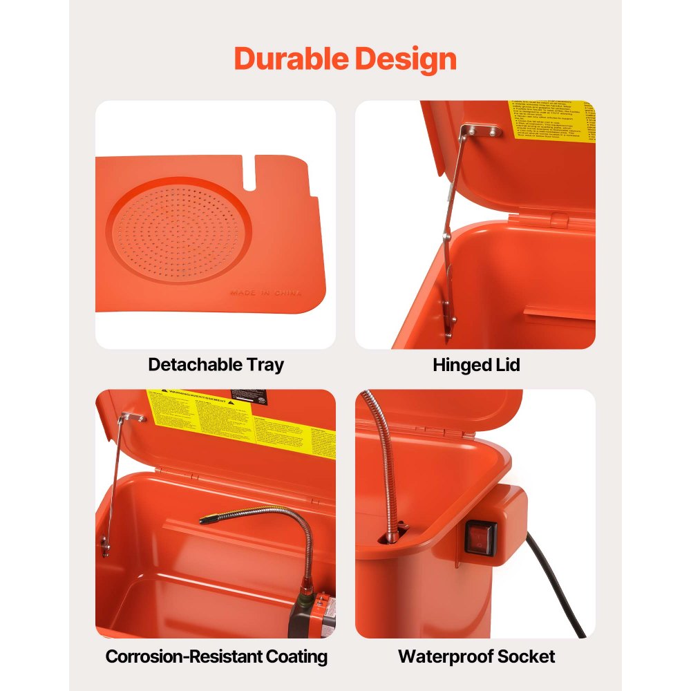 Durabilidad a largo plazo: Fabricado con acero resistente con un recubrimiento en polvo resistente al óxido y a la corrosión, nuestro limpiador de lavadoras de piezas garantiza una durabilidad duradera