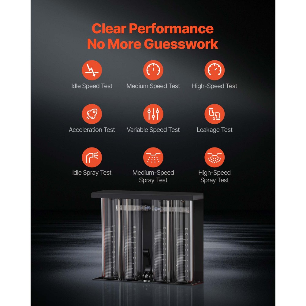Diseño de 12 V y 4 cilindros: El probador limpiador de inyectores de combustible ultrasónico puede probar 4 inyectores simultáneamente para una mayor eficiencia, con una capacidad de un solo cilindro de 3,72 oz