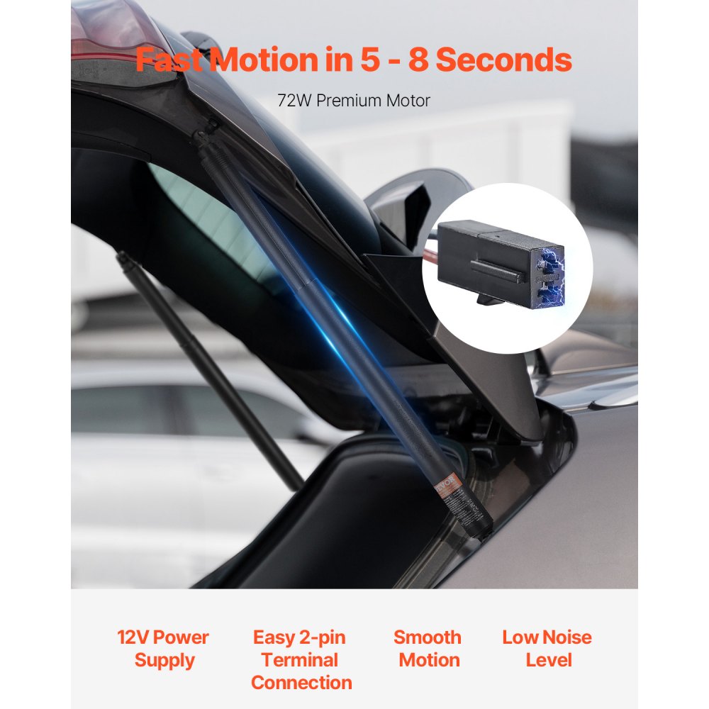 Motor de alta calidad: Este soporte de elevación eléctrica para portón trasero izquierdo y derecho está equipado con un motor de alta potencia de 72 W y una varilla de resorte de precisión para minimizar el impacto y garantizar un movimiento silencioso. El conector de 2 pines de una sola fila y la junta esférica garantizan una instalación suave y sin complicaciones