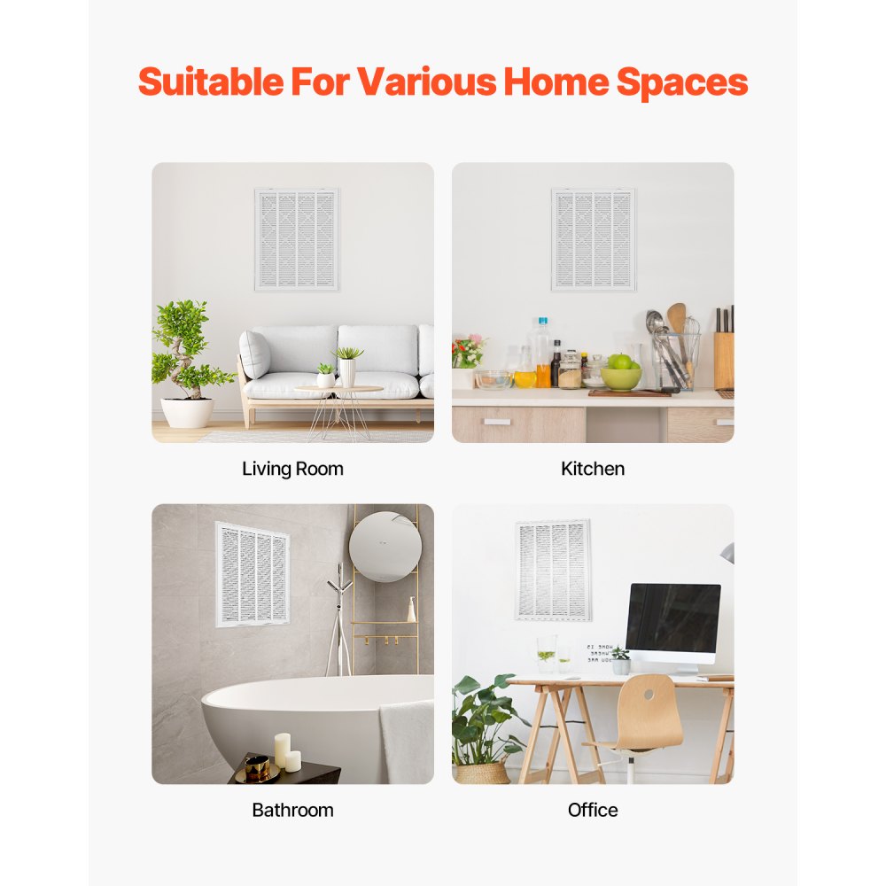 Aplicación versátil: Con su diseño elegante y minimalista, esta rejilla de retorno complementa varios estilos de interiores. Es ideal para salas de estar, oficinas, cocinas, baños y centros comerciales, y mejora el flujo de aire cuando se usa con calentadores, aires acondicionados o sistemas combinados en entornos residenciales y comerciales