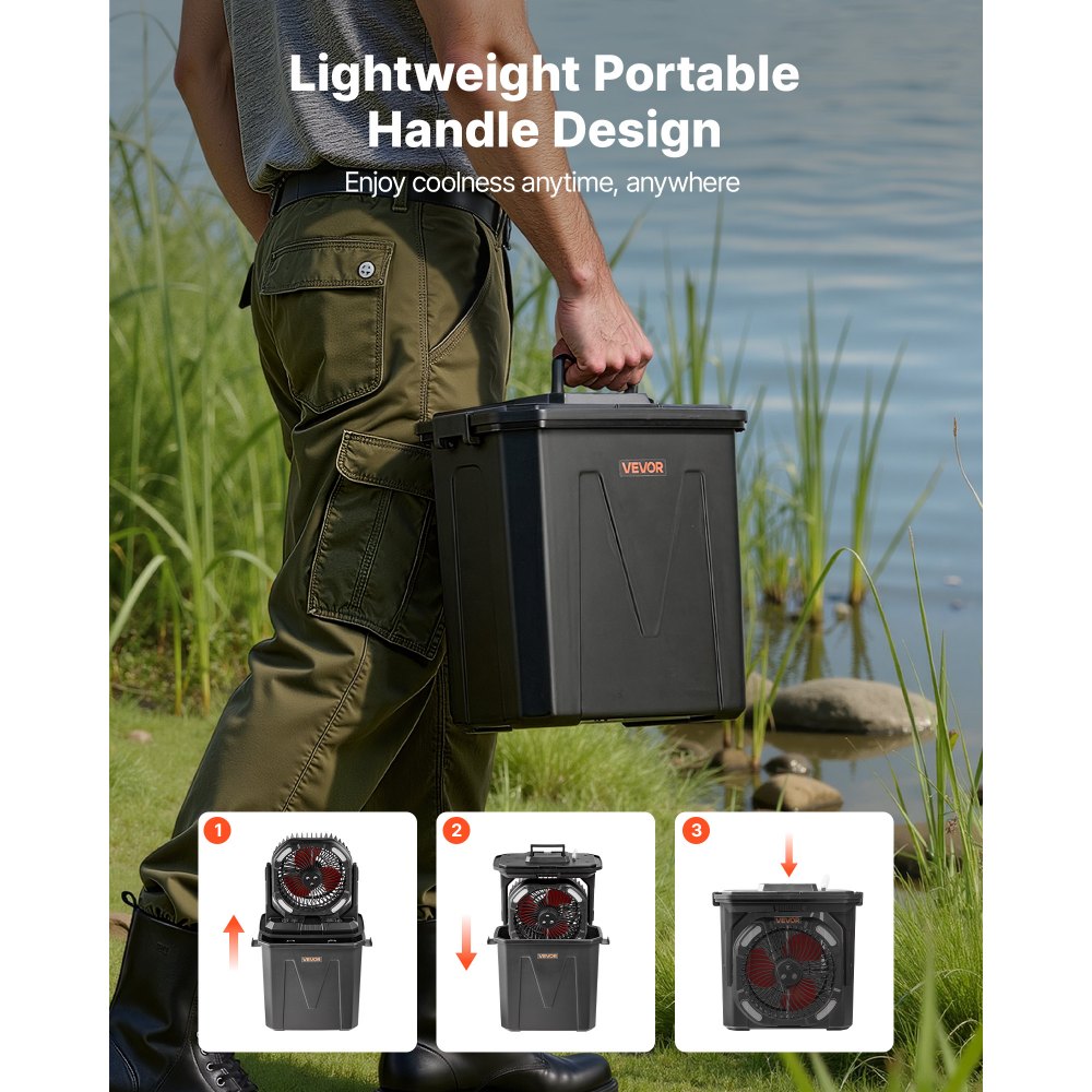 Ventilador Nebulizador de Agua 11 W Motor de 2700 RPM, Ventilador Humidificador con Tanque de Agua de 9 L, Batería de 10.000 mAh, 4 Velocidades de Viento, 5 Modos de Iluminación, para Camping - Climatización