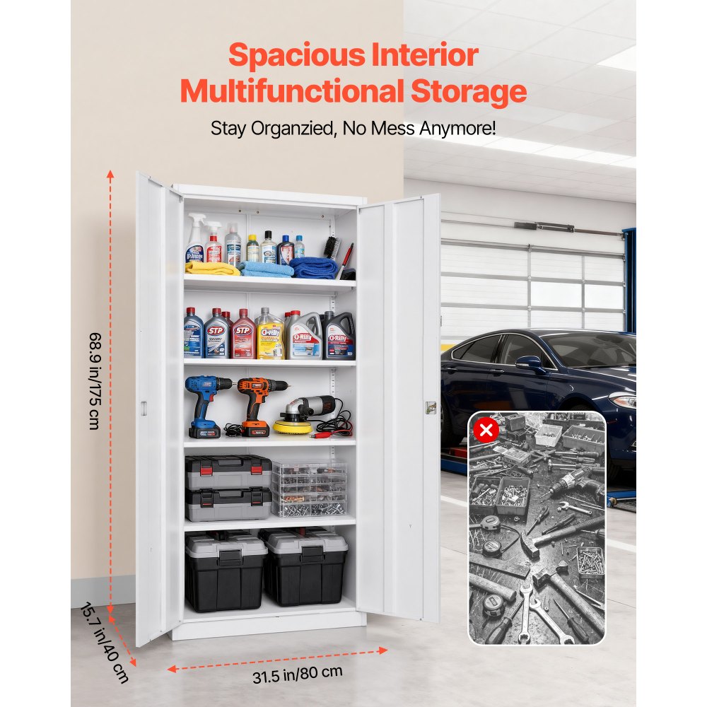 Seguro y estable: Una cerradura de tres puntos con 2 llaves mantiene sus artículos seguros en este gabinete de almacenamiento de garaje. 4 cierres magnéticos mantienen las puertas firmemente cerradas, mientras que los soportes triangulares reforzados evitan que se vuelque