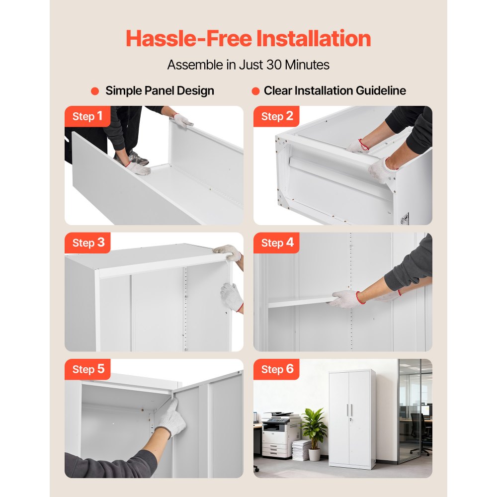 Fácil montaje: Con un diseño de paneles sencillo, este armario metálico con cerradura permite un montaje rápido y sencillo. Las instrucciones paso a paso te guían para un montaje rápido y empezar a organizar tu espacio de almacenamiento de inmediato