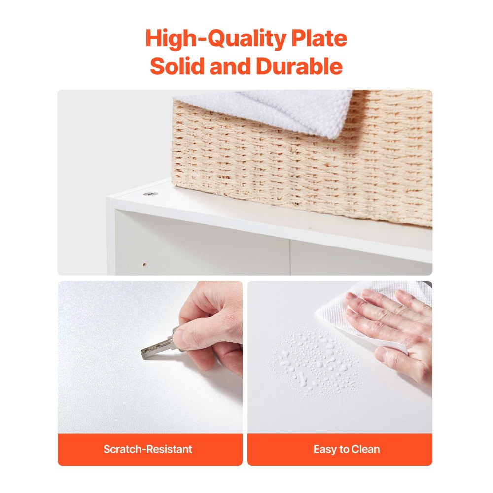 Detalles de diseño bien pensados: Con elegantes tiradores metálicos y bisagras de cierre suave, este mueble de baño ofrece un funcionamiento silencioso y sin riesgo de pillarse los dedos. Las tapas para los tornillos incluidas evitan la entrada de polvo y mantienen el mueble limpio