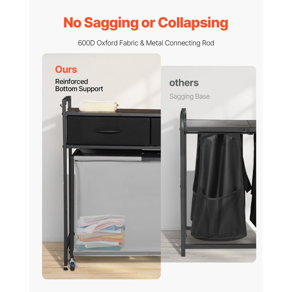 Clasificación y almacenamiento sin esfuerzo: Con tres bolsas de tela con una capacidad total de 120 litros, es ideal para clasificar ropa clara y oscura, ropa de adultos y niños, o calcetines y toallas. Dos cajones adicionales ofrecen espacio de almacenamiento privado y facilitan la clasificación