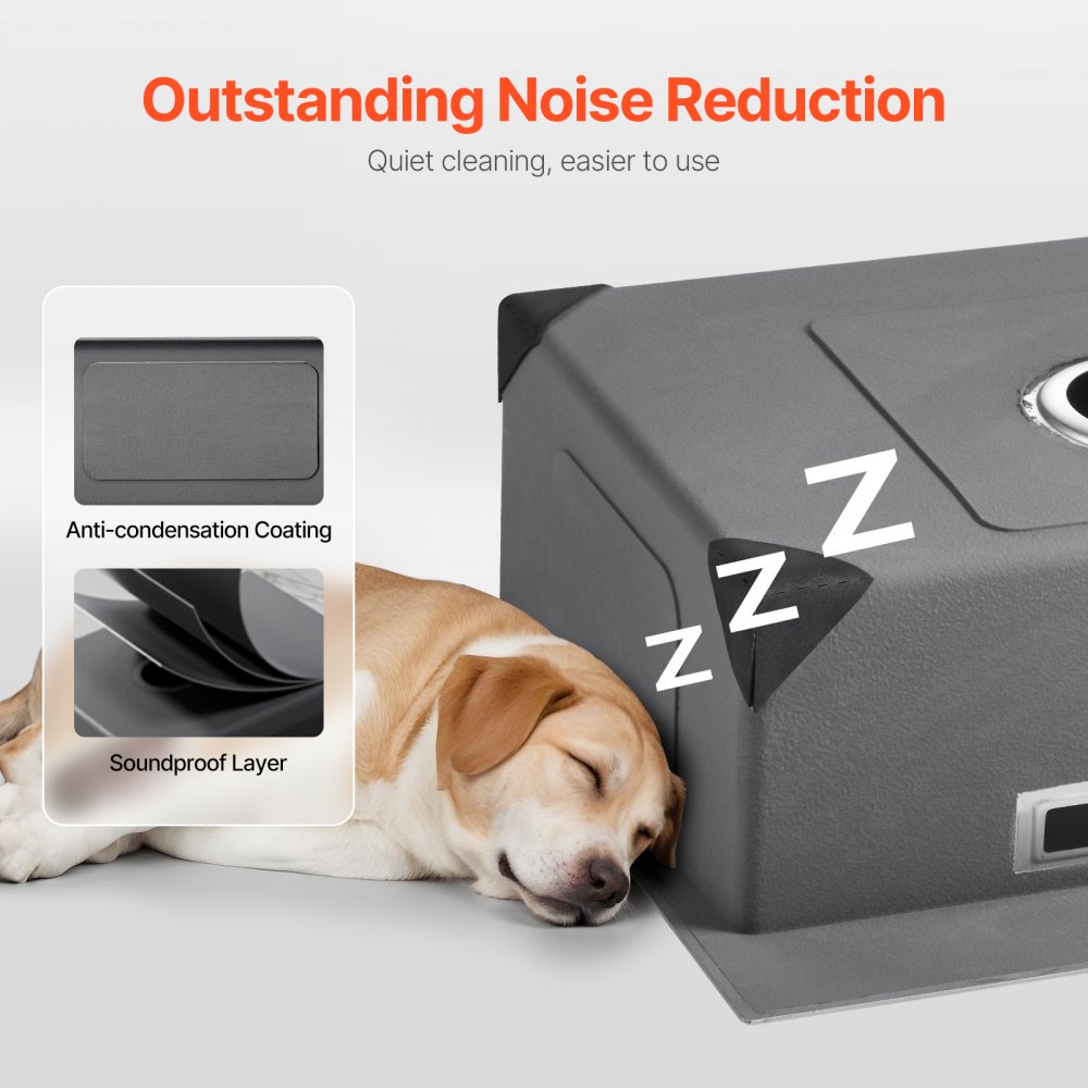 Capa de insonorización y anticondensación: Este fregadero para lavavajillas doméstico es ultrasilencioso y está equipado con almohadillas de goma más gruesas y suaves que amortiguan el ruido. Las almohadillas insonorizadas y los materiales de aislamiento de la capa base reducen el ruido, lo que garantiza una excelente reducción del sonido y un funcionamiento silencioso, mientras que la capa base gruesa evita la condensación.