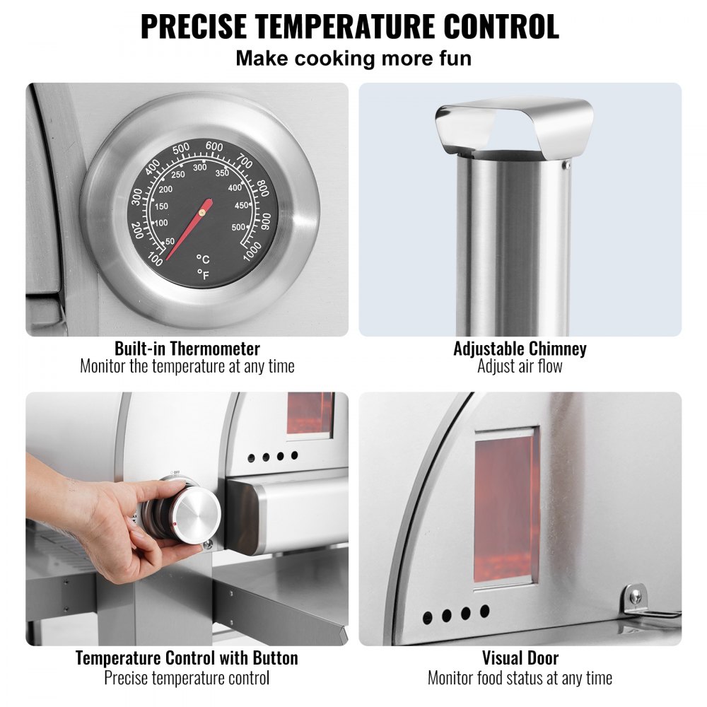 Fácil de usar y transportar: Equipado con un termómetro incorporado para controlar la temperatura del horno en cualquier momento. Cuenta con 2 ruedas móviles para una fácil maniobrabilidad en diversos entornos al aire libre. Viene con accesorios que incluyen una pala para pellets, guantes y ganchos para mayor comodidad durante el uso.