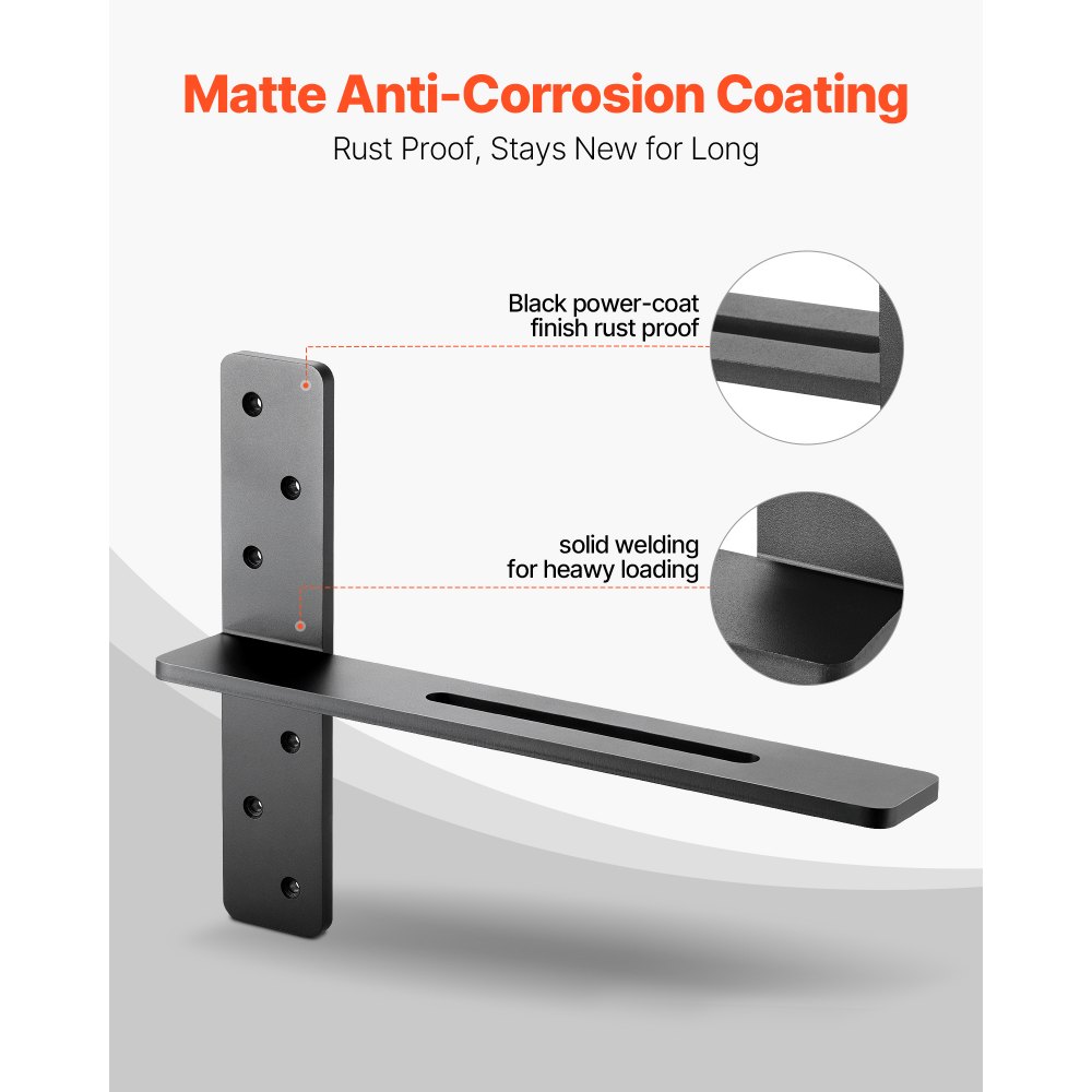 Soportes para Estantes en Forma de T, 2 Unidades, Capacidad de Peso: 90 kg, 406,4 x 73,5 x 304,8 mm, de Acero Macizo, Resistentes, para Encimeras, con Tornillos, Instalación Fácil, Negro - Jardín y césped