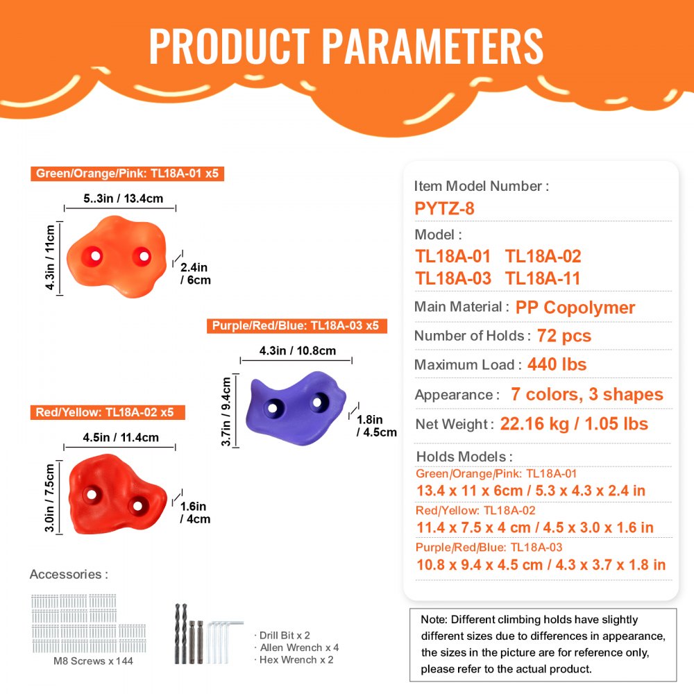 Fácil de instalar: las presas para escalada en roca son increíblemente fáciles de instalar. El kit incluye tornillos de instalación y otros accesorios, listos para usar, lo que le permite ahorrar tiempo valioso.