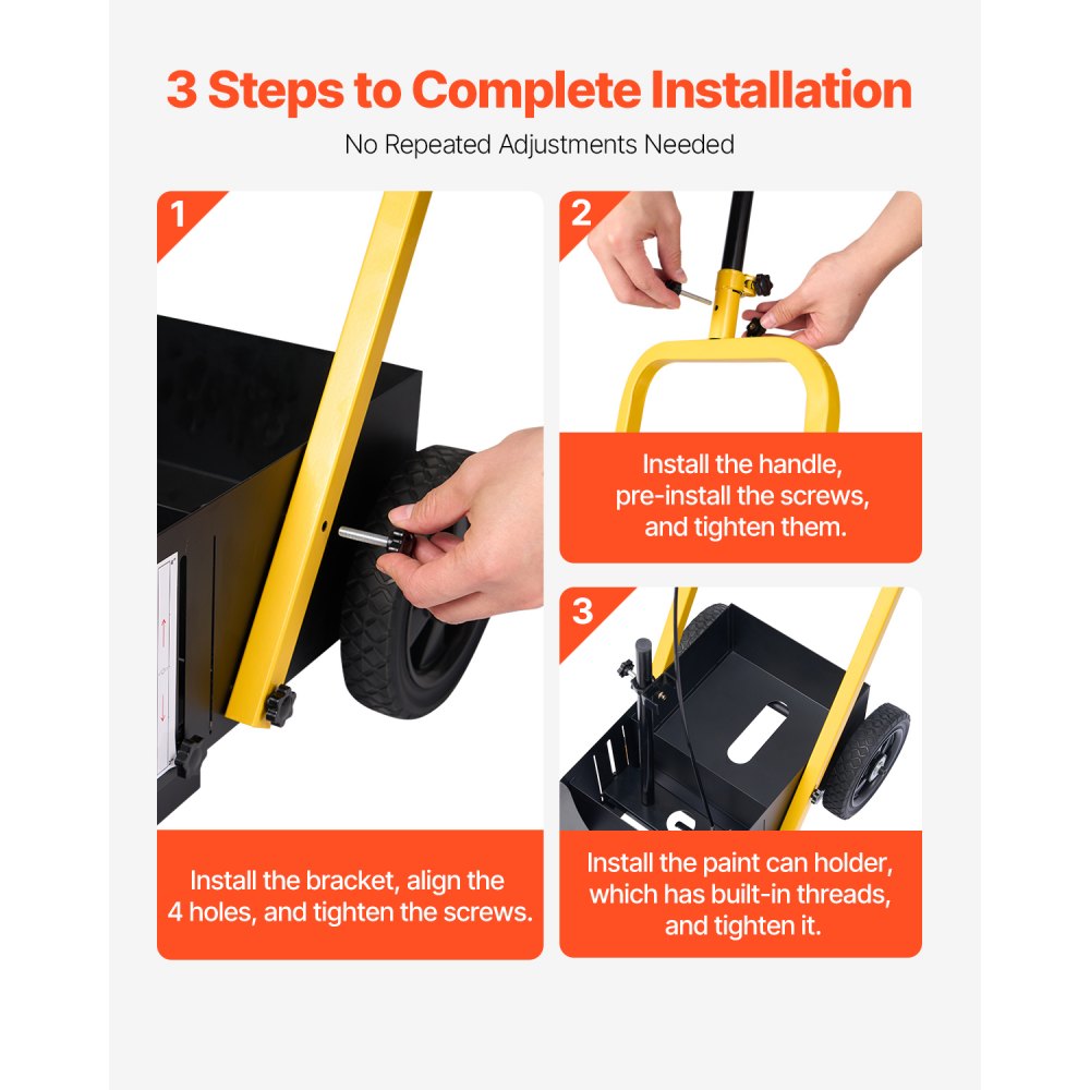 Ancho de línea ajustable de 2 a 4 pulgadas: Ajuste el ancho de línea de la máquina de línea de rayado modificando la altura de la lata de pintura desde el suelo, lo que permite flexibilidad en el grosor de la línea. Nota: Utilice una lata de pintura tipo T diseñada para la máquina de línea de rayado; evite utilizar latas de pintura con boquillas rectas hacia arriba o hacia abajo