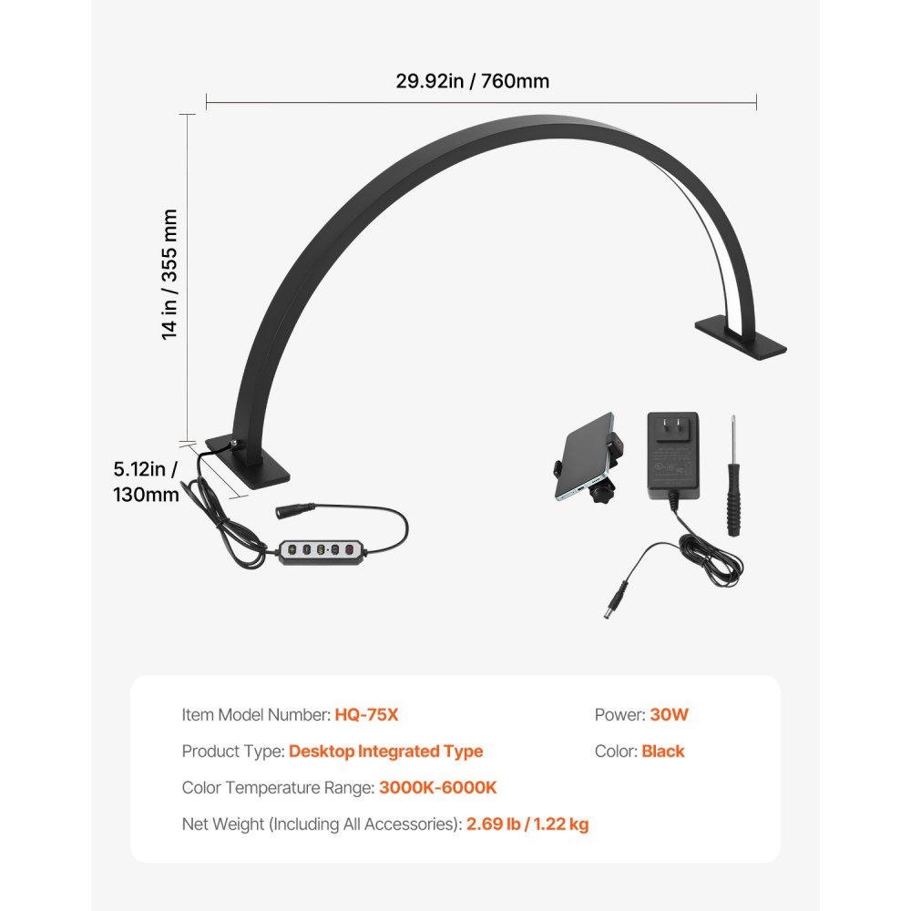 Lámpara Arqueada de Escritorio para Uñas, 30 W Lámpara LED en Forma de Media Luna con Soporte para Teléfono, Brillo y Temperatura de Color Ajustables, para Belleza, Extensiones de Pestañas - Salud y bienestar