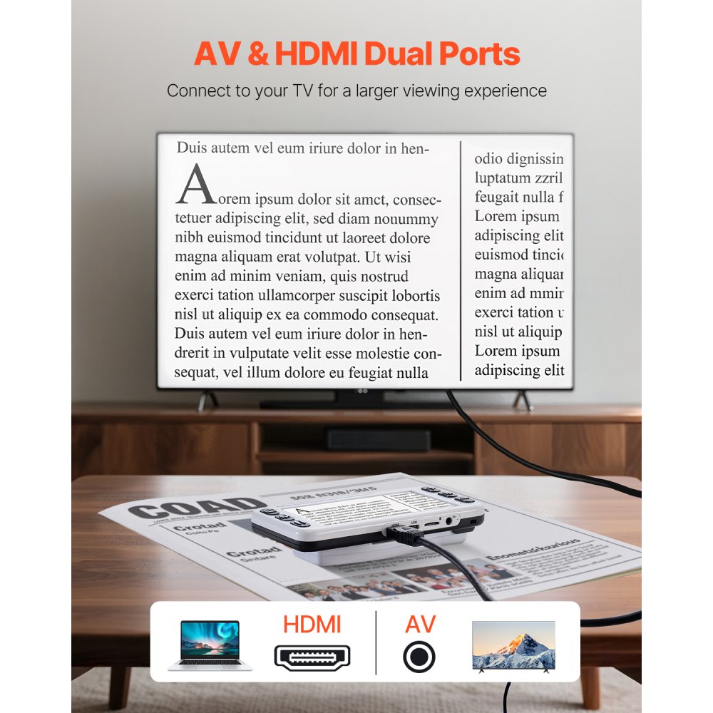 Visibilidad mejorada: Equipado con salidas duales AV y HDMI, este dispositivo electrónico de lectura se puede conectar a un televisor para disfrutar de una pantalla más grande y nítida. Este diseño permite visualizar las imágenes en una pantalla más grande para una mejor visibilidad, lo que facilita y hace más cómoda la lectura, la escritura y la visualización de imágenes