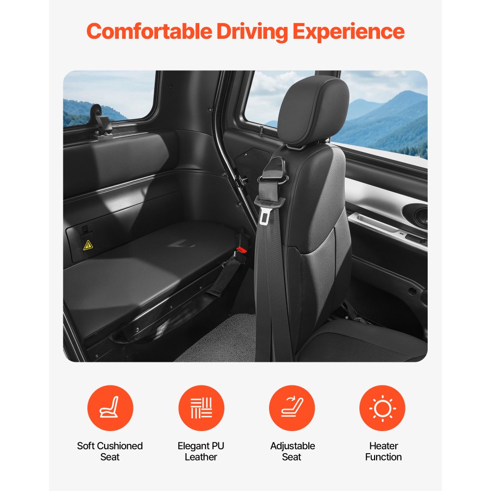 Conduzca cómodamente, llueva o truene: Equipado con elevalunas eléctricos, techo corredizo, ventilación trasera y sistema de calefacción integrado, este scooter eléctrico cerrado de 3 ruedas para personas mayores ofrece protección total contra las inclemencias del tiempo. La cámara de visión trasera, los espejos retrovisores dobles, el tablero LCD, la radio y la conectividad Bluetooth aumentan aún más la comodidad y el placer de conducir