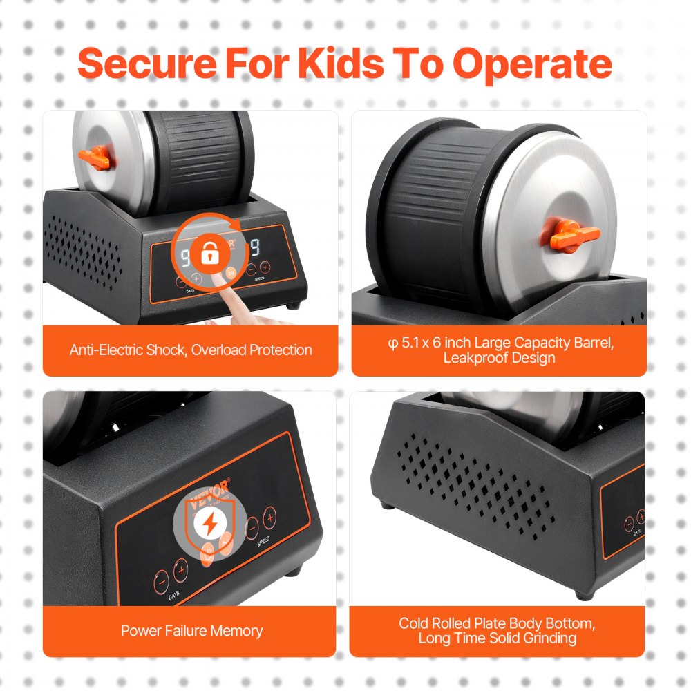 Control mejorado de 9 velocidades: Esta pulidora de piedras cuenta con un panel de control fácil de usar que le permite elegir entre 1 y 9 velocidades y un temporizador de 1 a 9 días. Ya sea que sea un principiante de 8 años o un entusiasta de la colección de piedras, disfrutará puliendo piedras preciosas sin esfuerzo para crear artesanías comparables a las de un maestro.
