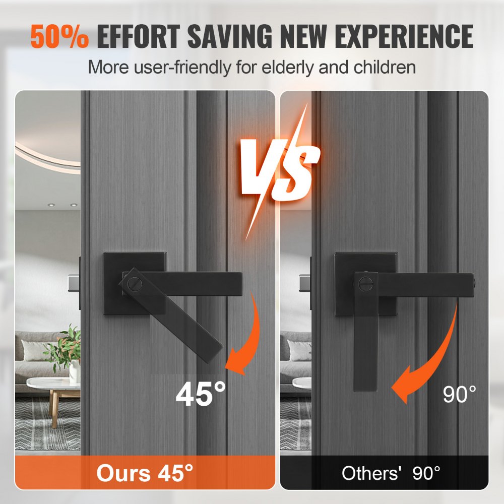 Rotación de 45° para una apertura sin esfuerzo: El acceso rápido a la puerta con un simple giro de 45° requiere menos esfuerzo que las manijas convencionales de 90°. Esta manija para puerta interior es perfecta para espacios reducidos y es particularmente conveniente para personas con movilidad reducida