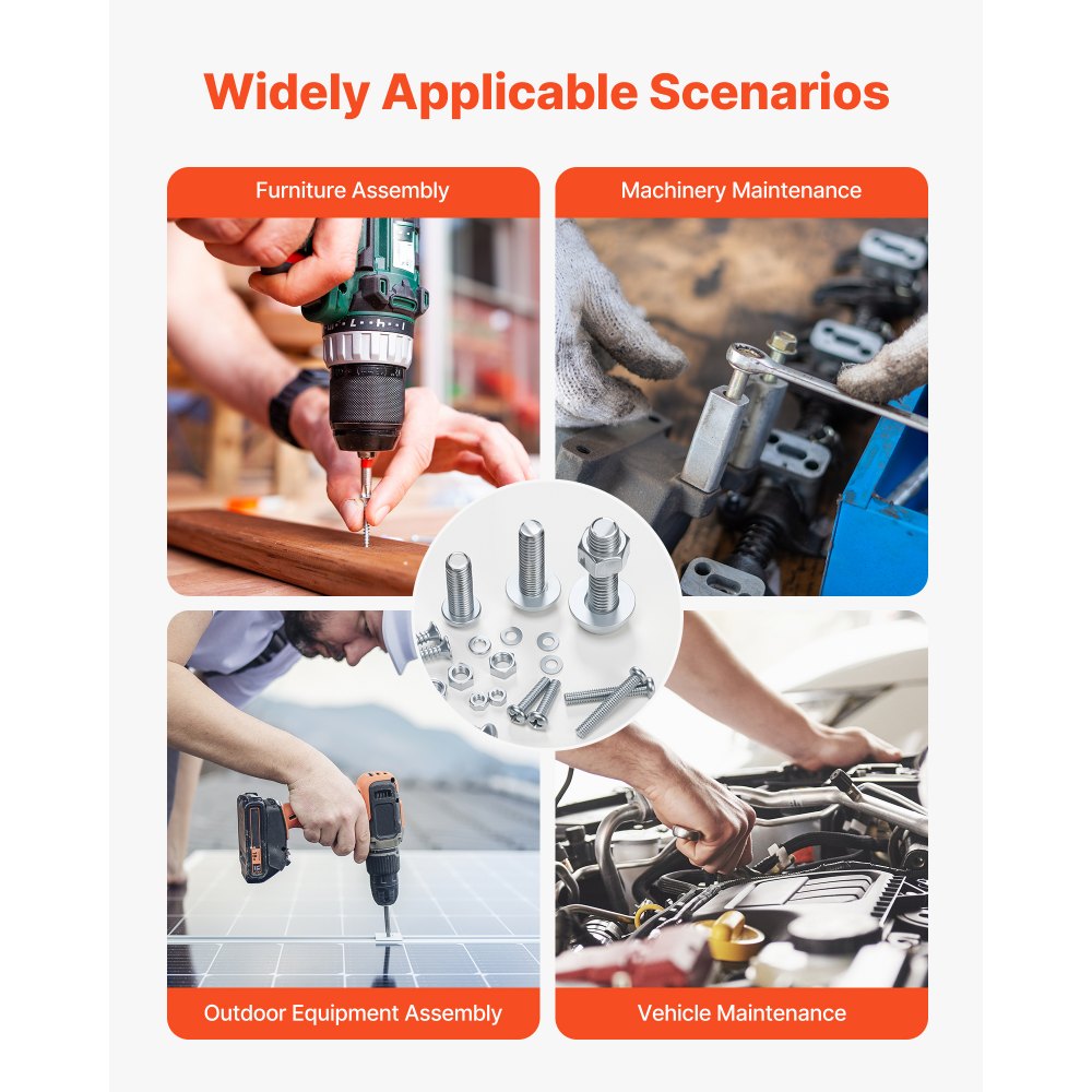 Juego multiespecificaciones de 2250 piezas: Incluye 910 pernos métricos(M3, M4, M5, M6, M8) y pernos SAE (#4, #6, #8, #10, #1/4, #3/8, #5/16, #6-32, #8-32, #10-24, #1/4-20, #5/16-18, #3/8-16). Ideal para reparaciones y reemplazos