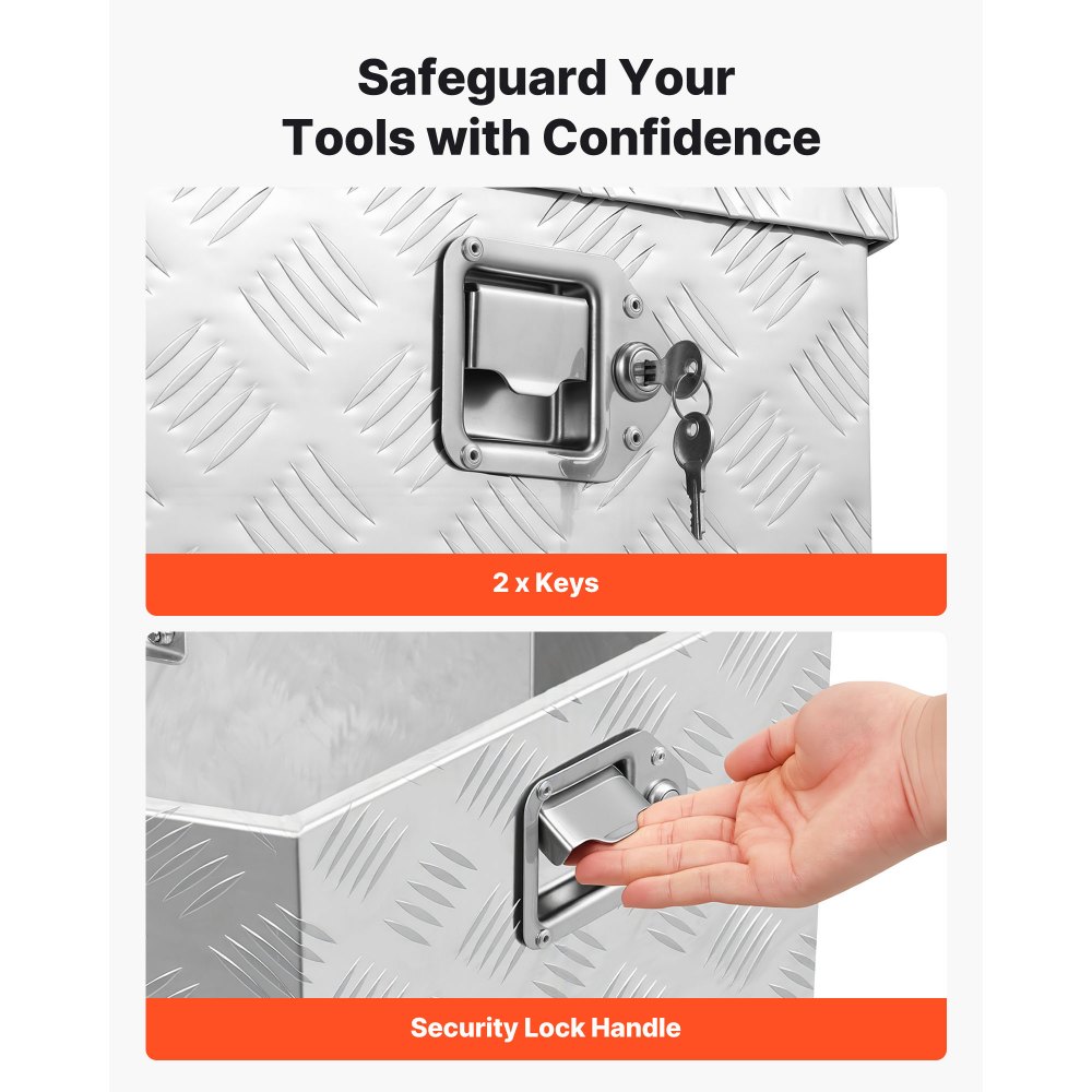 Seguridad mejorada: Esta caja de herramientas para remolque utilitario cuenta con una cerradura integrada para evitar apalancamientos y reducir las vibraciones durante el transporte. Incluye dos llaves especiales para mayor tranquilidad. Sus pertenencias estarán protegidas contra robos