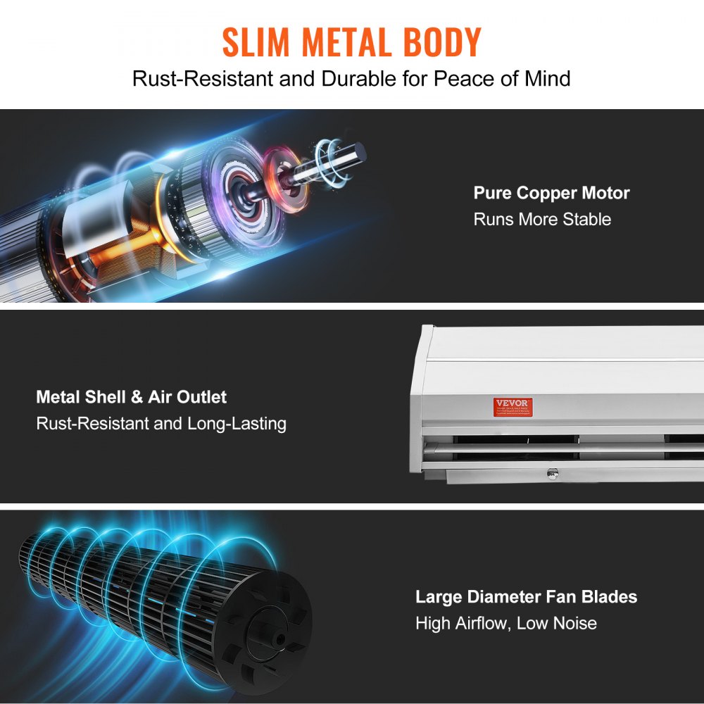 Cortina de aire interior comercial de 4 pies, superpotencia, 2 velocidades, 2038 m³/h, cortinas de aire para puertas ventilador interior sobre puerta con interruptor de límite resistente - Climatización