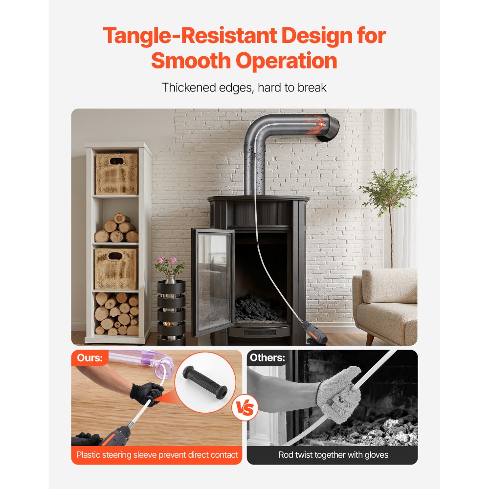 Limpieza eficaz y segura: Gracias a su conector giratorio de plástico, este limpiador de chimeneas evita el contacto directo con la varilla, garantizando así una mayor seguridad. La limpieza de abajo hacia arriba elimina la creosota y la suciedad, mejora la eficiencia de la chimenea, reduce el consumo de combustible y disminuye significativamente el riesgo de incendio