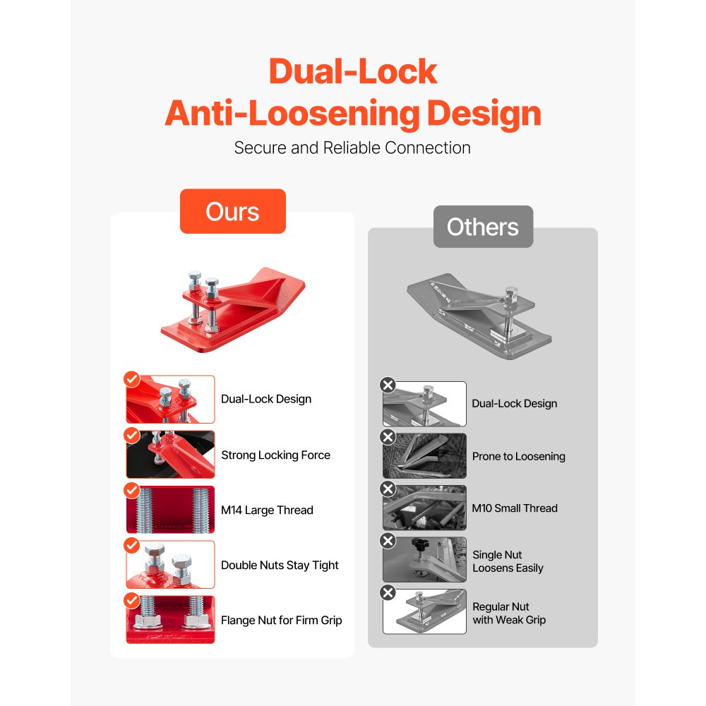 Diseño de doble cierre: A diferencia de los protectores de un solo cierre, nuestro protector de cucharón de tractor cuenta con un diseño de doble cierre para una sujeción más firme. Los pernos tienen tuercas en la parte superior e inferior, además de roscas M14 más grandes, lo que garantiza una conexión estable para un uso confiable