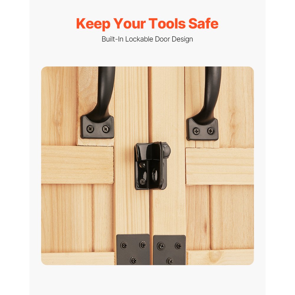 Estructura resistente: Este cobertizo de almacenamiento para exteriores está fabricado con madera de cedro natural de alta calidad y tratado para una excelente impermeabilidad y resistencia a la corrosión. El diseño antivuelco bien pensado evita que el gabinete se vuelque, lo que garantiza que pueda soportar diversas condiciones climáticas para un uso a largo plazo.