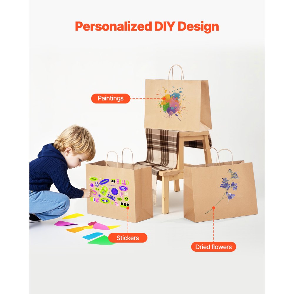 Bolsas de Papel Kraft con Asas Resistentes 100 Unidades 40,6x15,2x30,8 cm Bolsa de Papel para Compras Duradera Bolsitas Artesanales de DIY para Cumpleaños, Bodas, Embalaje, Regalos, Marrón - Equipos de preparación de alimentos