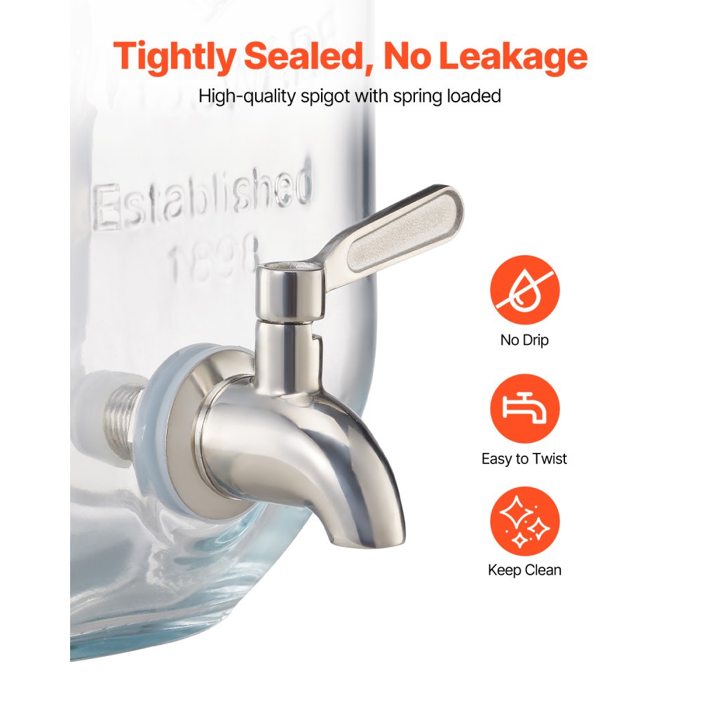 Grifo antigoteo: Equipado con un grifo de acero inoxidable hermético, el dispensador de bebidas es práctico para dispensar sin fugas, así que no tendrá que preocuparse por limpiar bebidas derramadas. Ayuda a mantener su estación de bebidas limpia y estética