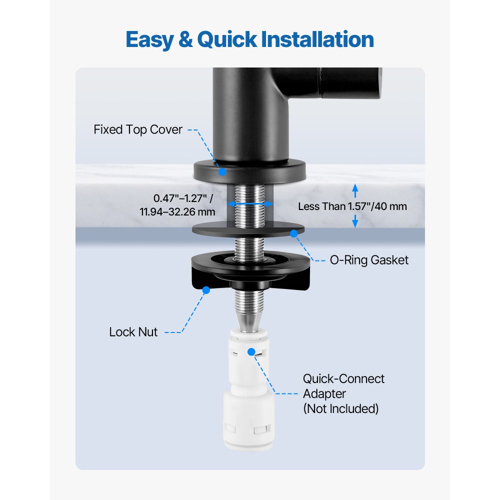 Fácil instalación: El grifo de ósmosis inversa incluye todas las piezas esenciales(tapa de montaje, arandela y cubierta de base) para una instalación impecable. No requiere herramientas especiales ni asistencia profesional. Instálelo usted mismo en minutos y disfrute de agua limpia y fresca al instante