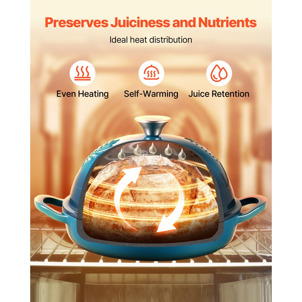 Horno Holandés de Hierro Fundido Esmaltado de 4,73 L, para Hornear Pan de Masa Madre, Olla Robusta con Tapa y 2 Asas, Apto hasta 260 °C, Olla para Familiares y Amigos, 329 x 250 x 180 mm - Equipos de preparación de alimentos