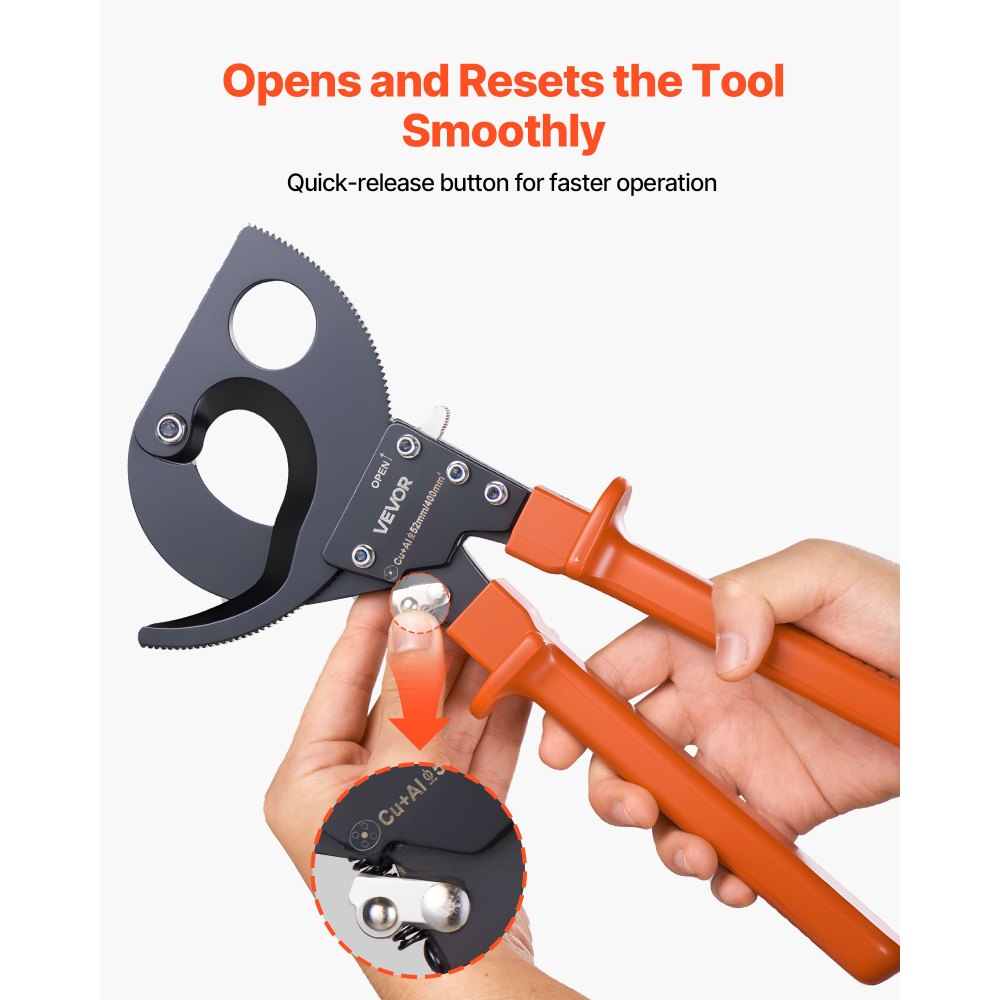 Cortador de Cables de Trinquete 325 mm, Cortador de Alambres y Cables de Cobre-Aluminio 400 mm², Cortacables con Hojas de Acero con Mangos Recubiertos de PVC y Botón de Liberación Rápida - Herramientas manuales