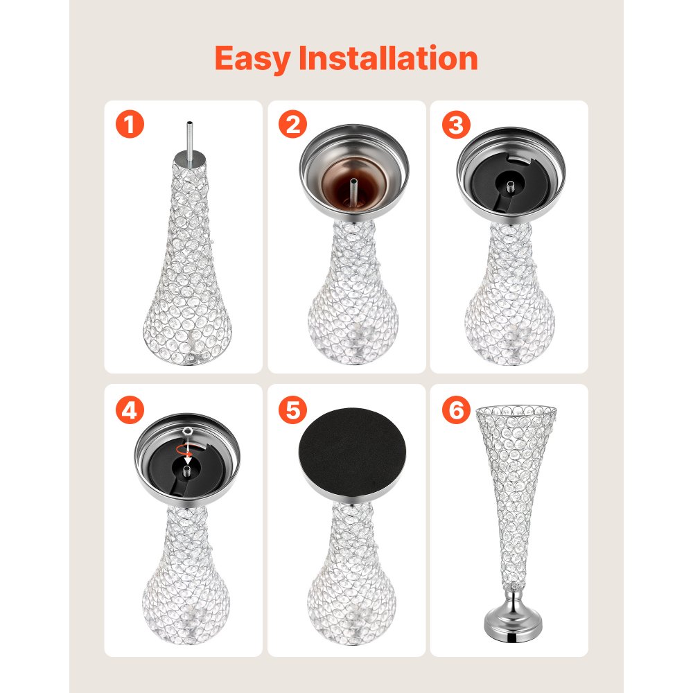 Fácil montaje: Diseñado para una instalación rápida, este jarrón decorativo para bodas incluye un bloque de contrapeso y una herramienta de manguito para ayudar a fijar el jarrón de manera eficiente durante la instalación