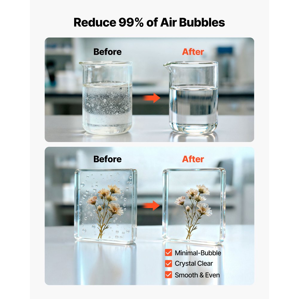 Superficie transparente y lisa: Diseñado para proyectos de fundición, nuestro recipiente a presión alcanza hasta 0,55 MPa para eliminar el 99 % de las burbujas internas. Esto deja las piezas de bricolaje sin burbujas, transparentes y lisas, lo que las hace ideales para proyectos de arte, manualidades y producción en estudio