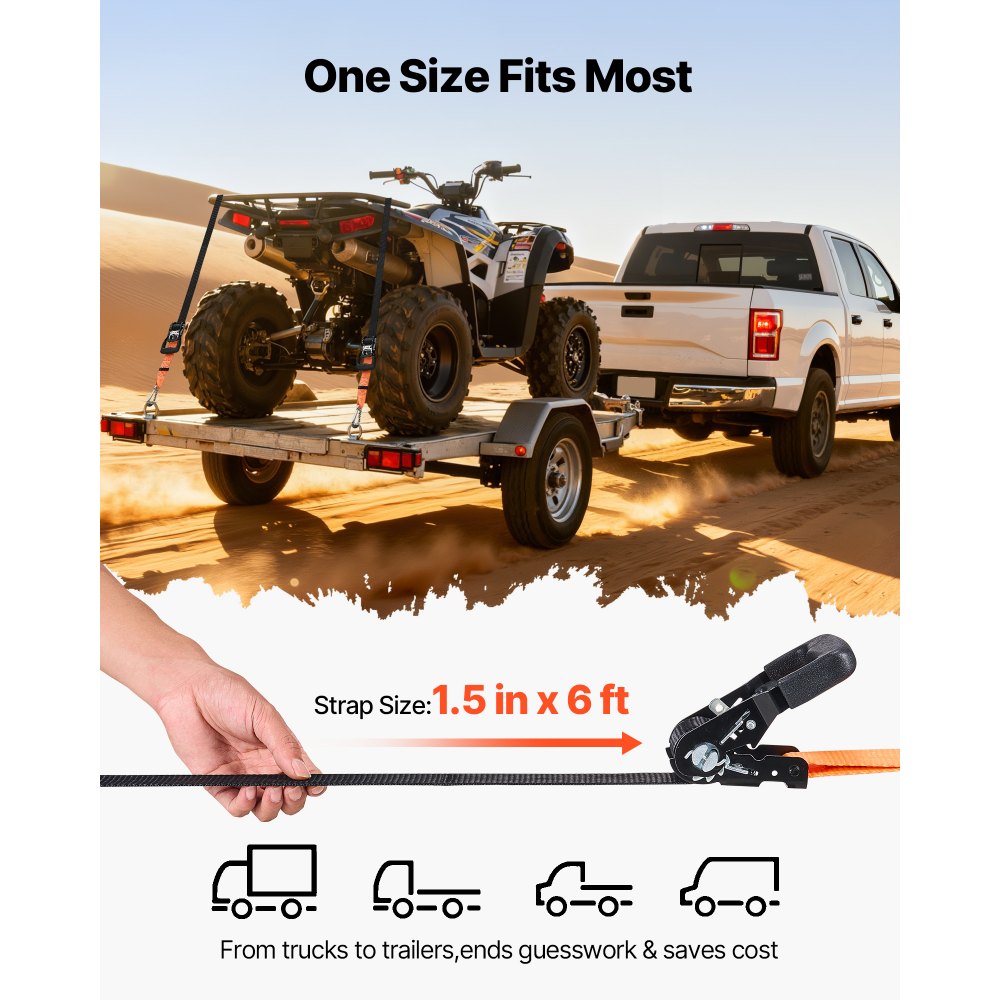 Una correa, múltiples usos: La cinta de poliéster de 3,8 cm x 1,8 m ofrece un alcance y una sujeción excelentes. Puede envolver y asegurar la mayoría de las cargas, desde SUV hasta camionetas, para que los muebles, el equipo y los utensilios permanezcan en su lugar